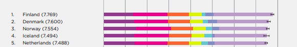 Страны в рейтинге расположены по так называемому «индексу счастья», который рассчитывается с учетом шести факторов: ВВП на душу населения, продолжительность жизни, социальная поддержка, здоровый образа жизни, свобода, коррупция. Каждый из этих факторов оценивался по 10-балльной шкале, после чего выводился средний балл для страны.