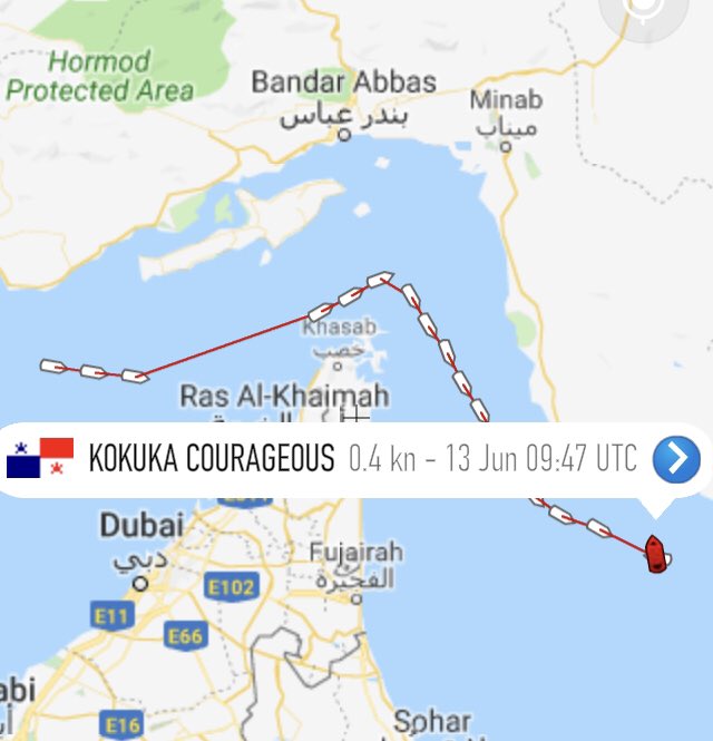 В четверг, 13 июня, на рассвете у берегов Ирана в Оманском заливе совершена торпедная атака на два нефтеналивных танкера. По информации газеты Tradewinds, торпедирован норвежский танкер Front Altair, ходящий под флагом Маршалловых островов, и ходящий под панамским флагом танкер Kokuka Courageous, который принадлежит гамбургской компании Reederei Bernhard Schulte Shipmanagement (BSM), сообщает информагентство Reuters.