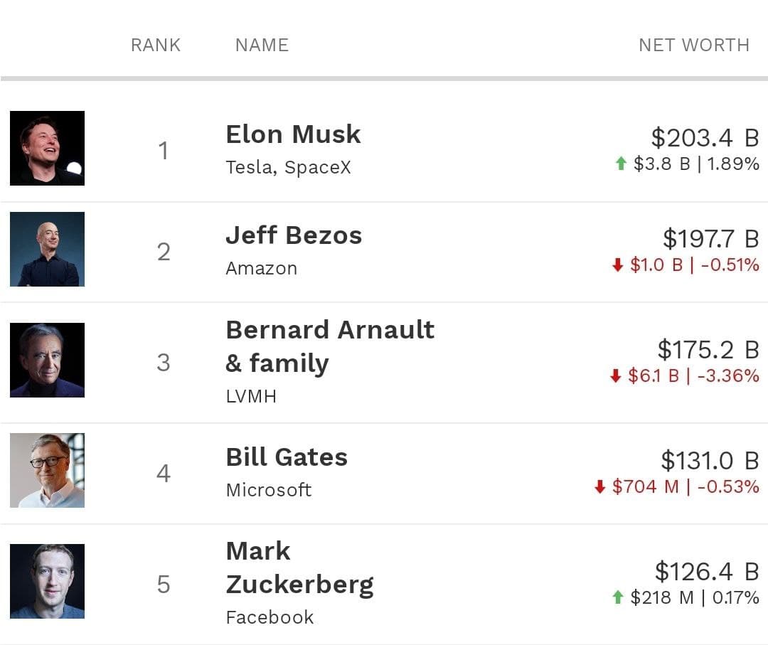 Второе место в рейтинге занимает глава Amazon Джефф Безос ( $197,7 млрд), третье — основатель Louis Vuitton Moet Hennessy Бернар Арно ( $175,9 млрд).