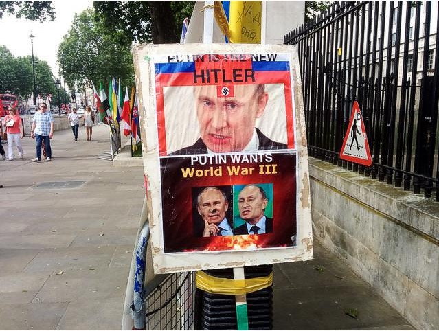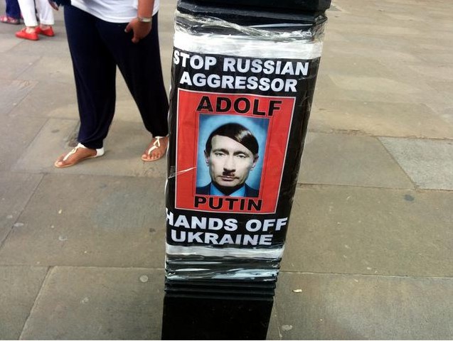 В марте 2014 украинцы организовали митинг в Лондоне, на котором сравнивали Кремль с нацистами.
