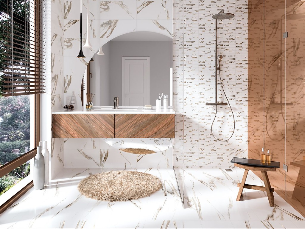- Виберіть правильний тип плитки: для декору можна використовувати панно, бордюри, візерунчаті плитки або контрастні вставки.