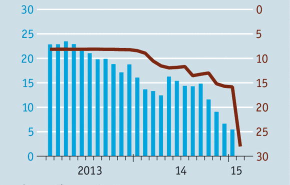 Эта экстренная финансовая помощь может запомниться, как одна из самых неэффективных за все время. Я имею в виду помощь не Греции, а Украине. Всего лишь две недели назад Генеральный директор Международного валютного фонда (МВФ) Кристин Лагард (Christine Lagarde) пообещала предоставить Украине 40 миллиардов долларов за четыре года — звучит впечатляюще для страны, ВВП которой может скоро сократиться до 70 миллиардов долларов. Однако с тех пор экономический кризис в Украине гораздо усилился. Национальная валюта побила исторические минимумы: сейчас за доллар дают около 32 гривен. На этой неделе Национальный банк Украины вновь установил контроль над гривной, безуспешно пытаясь остановить ее падение. Рыночная стоимость государственных бондов упала до 40 центов за доллар.