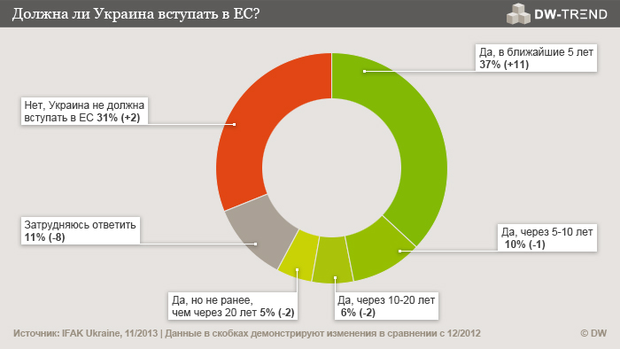 Таковы результаты репрезентативного опроса DW-Trend, проведенного в ноябре киевским отделением Института изучения общественного мнения IFAK по заказу украинской редакции DW.