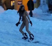 Зимние забавы: две киевлянки нагишом спустились на сноубордах по Андреевскому спуску